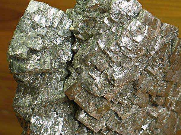 硫铁矿矿床主要是在内生作用下形成的,晶体常见为六方体、八面体及五角十二面体。有时呈金黄色,有时为黄铜色,并有黄亮黄亮的金属光泽。比重4.95—5.20,硬度6.0—6.5,条痕为绿黑色,性脆,受敲打时很容易破碎,破碎面是参差不齐的。焚烧时有蓝色火焰并有刺鼻的硫黄臭味,不宜储存于露天或通风不良的仓库内。