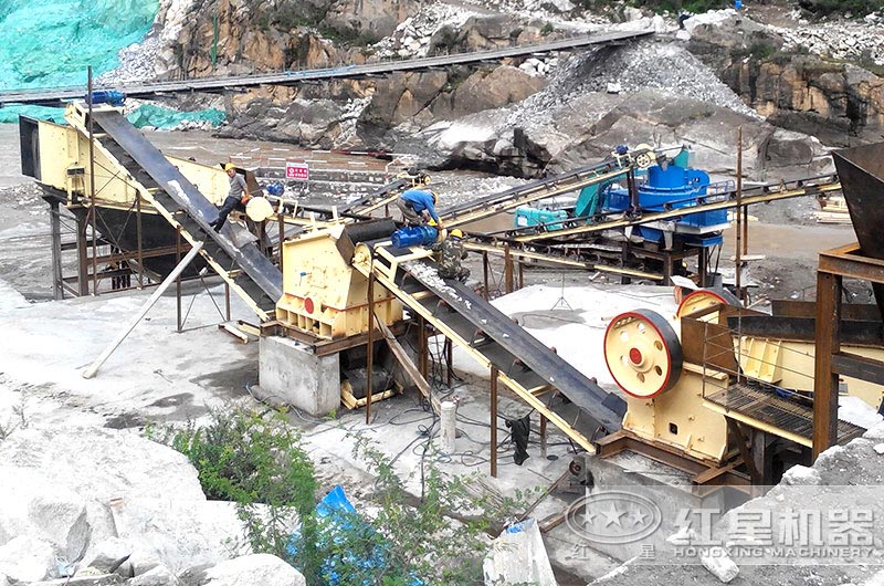 配置设备:重锤式破碎机+制砂机+洗砂机+其他辅助设备